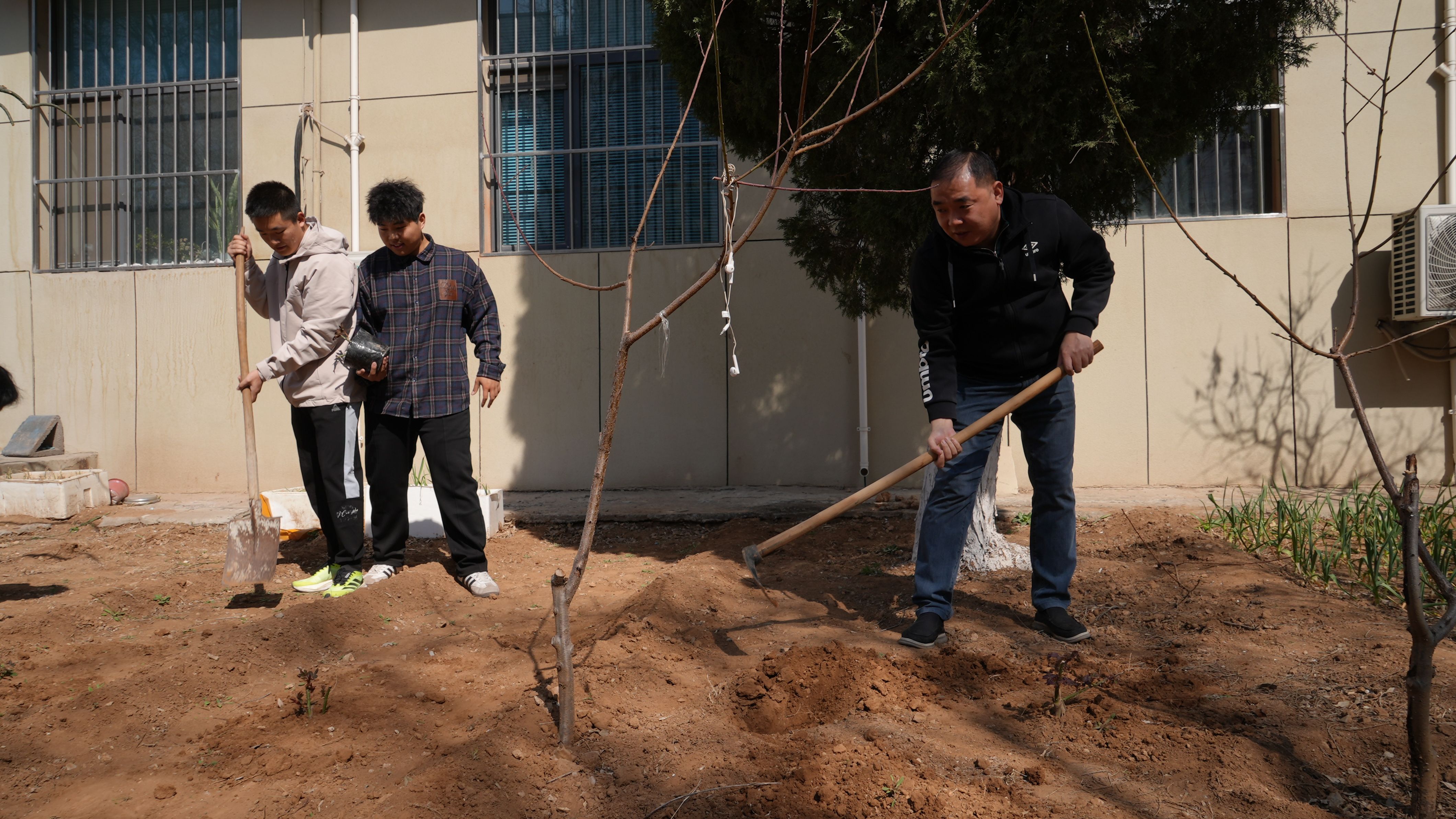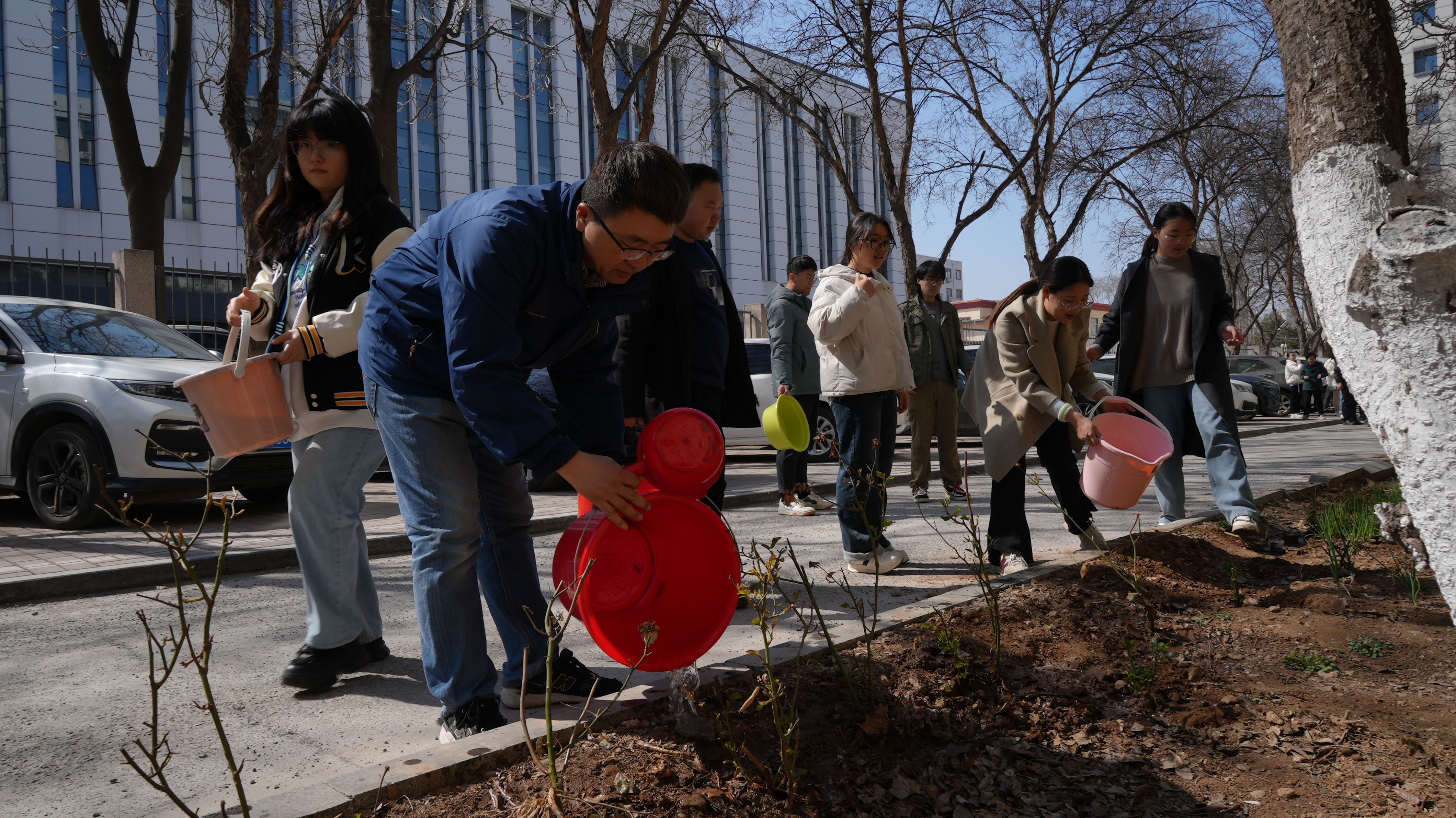 经过大家的辛勤劳动,一株株新栽绿植在春日里迎风挺立,焕发出蓬勃生机。
