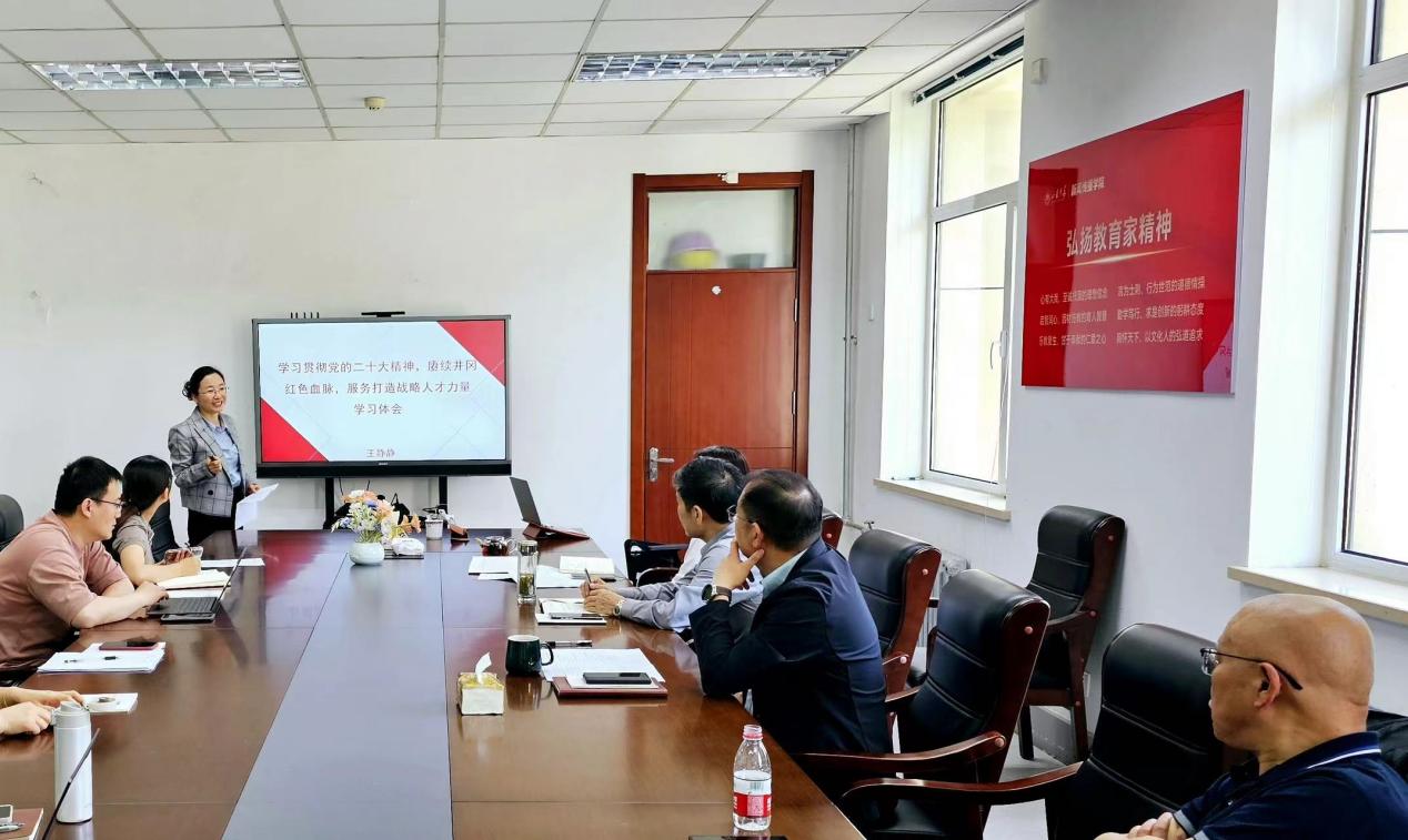 王静静详细谈了对于坚定理想信念、实事求是、艰苦奋斗、依靠群众的井冈山精神的深刻理解。她表示,要时刻谨记革命先辈们艰苦奋斗的历史,结合新时代条件、结合教学科研及学生培养工作,实事求是、敢闯新路,继承发扬好井冈山精神。