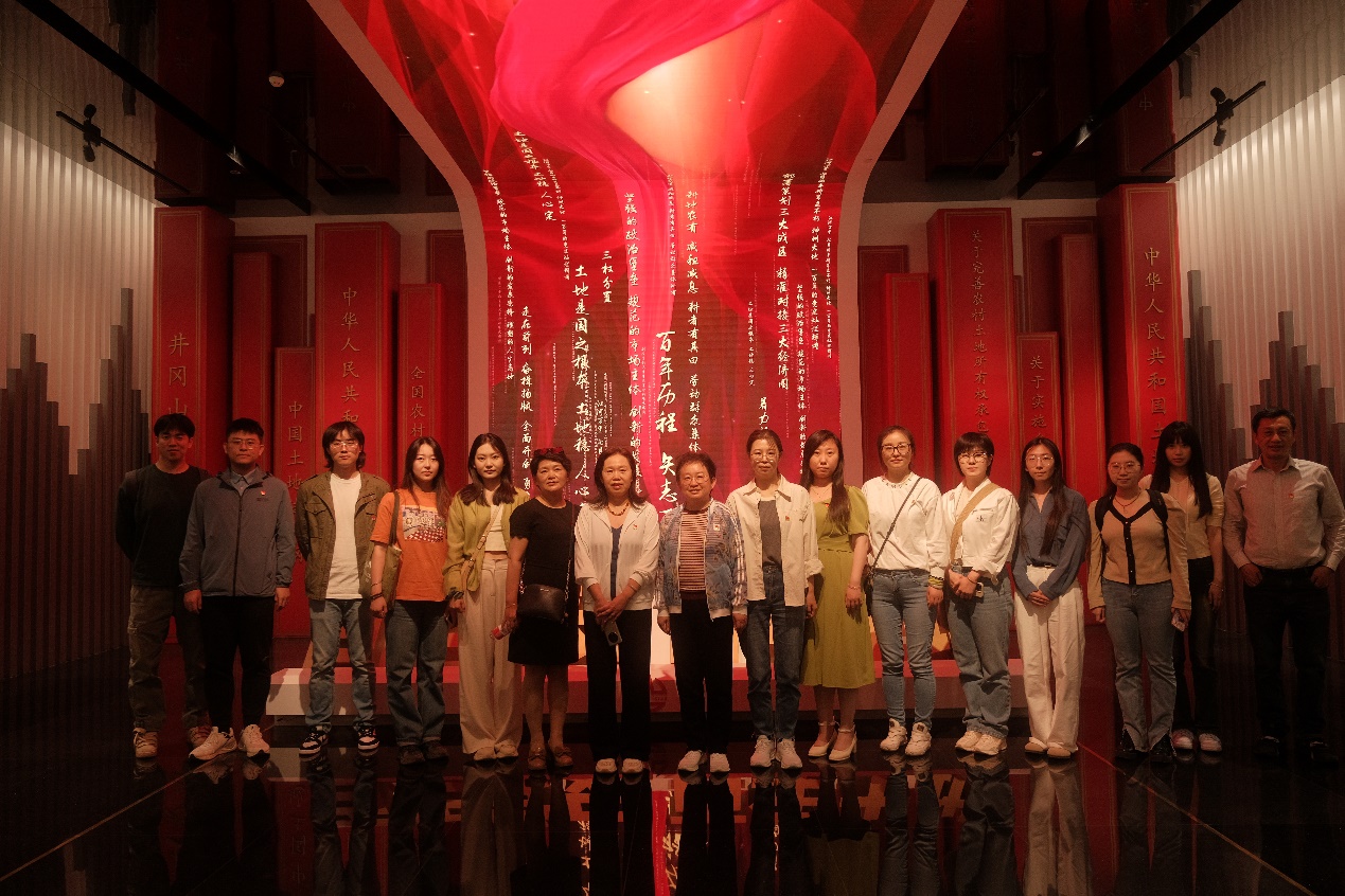 在展览馆中,新闻传播学院师生跟随讲解员的脚步,深入其中,依次参观了“百年党史是一部围绕土地产权的党的斗争史”“百年党史是一部利用土地要素的党的奋斗史”“百年党史是一部创新土地制度的党的改革史”“百年党史是一部运用土地资源的党的发展史” 四大板块为展示框架,忠实记录好、全面反映好建党百年厚重而光辉的历程。清晰的脉络和翔实的史料呈现深深震撼着参观者的心灵、冲击着师生的思想,深刻地感受着百年来,中国共产党始终坚守“江山就是人民、人民就是江山”,我们党根基在人民、血脉在人民,党的百年历史,就是一部践行党的初心使命的历史,就是一部党与人民心连心、同呼吸、共命运的历史。
