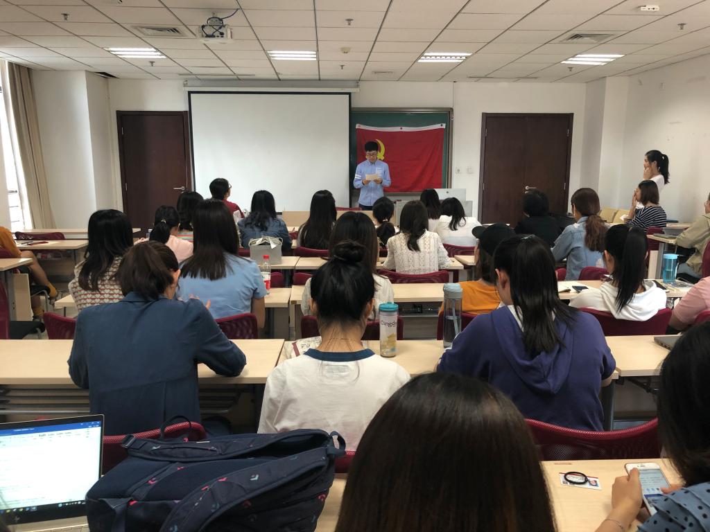 9月27日上午,新闻传播学院2018级硕士生党支部于中心校区知新楼A623教室顺利召开支部大会,对预备党员朱亮发展为中共正式党员进行讨论和表决。会议由支部组织委员吴洁主持,新闻传播学院党委副书记王丽君出席了本次会议。