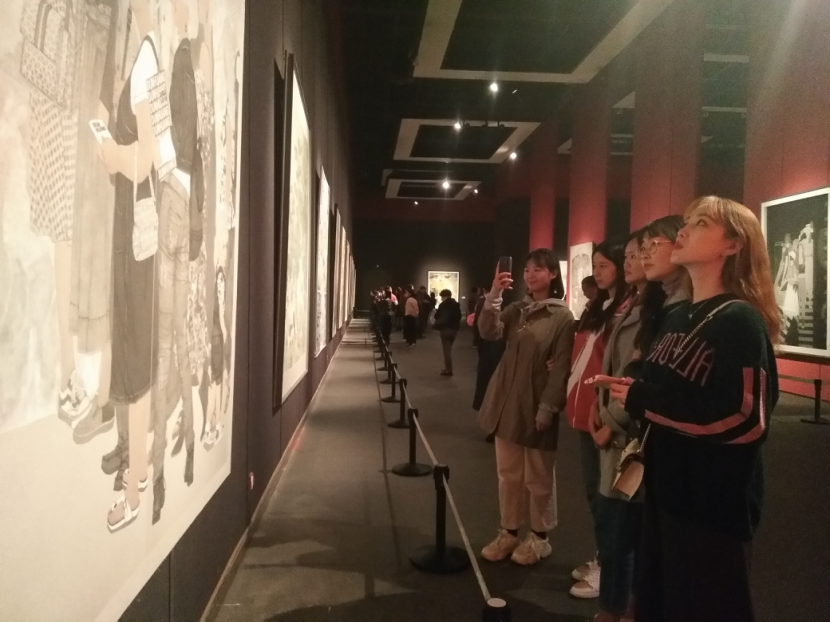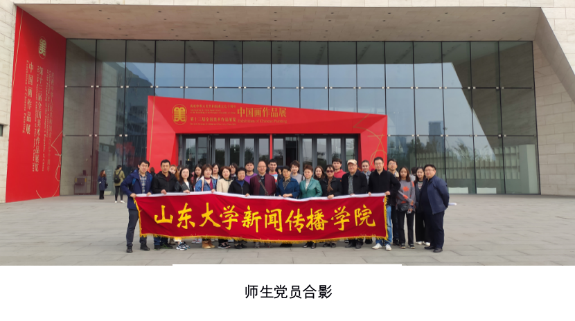 10月17日下午,山东大学新闻传播学院组织部分师生前往山东省美术馆,参观庆祝中华人民共和国成立70周年的第十三届全国美术作品展览中国画作品展。来自新闻学党支部、机关广电党支部、研究生党支部、本科生党支部的32名党员参加了此次活动。
