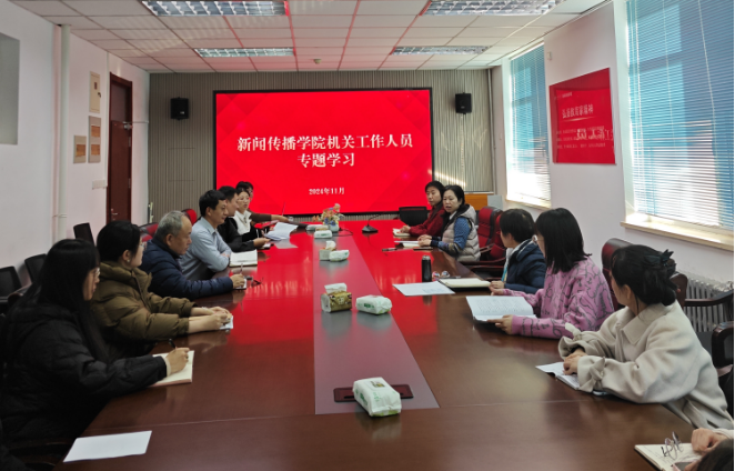 11月27日,新闻传播学院机关广电工作人员开展专题学习活动,切实牢固树立以学术、学者、学生为中心的理念,让“马上就办”成为一种行为习惯,院党委委员、副处级组织员王智洁主持会议。