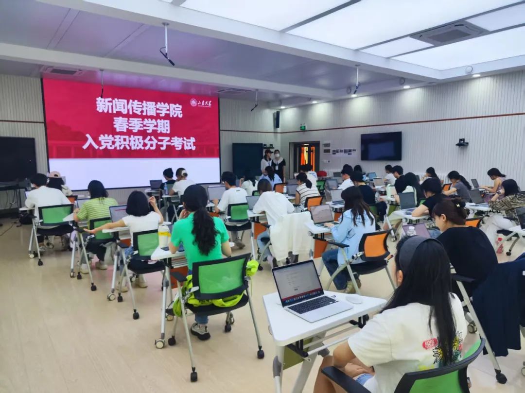 5月17日下午,新闻传播学院春季学期入党积极分子考试于生命南楼231进行,来自学院各支部三十余名积极分子参加考核。