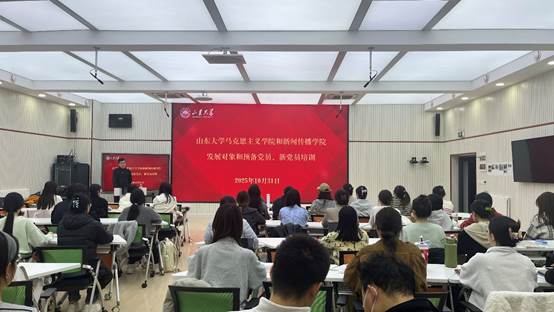 2025年10月31日晚,山东大学马克思主义学院与新闻传播学院在生命南楼231会议室联合举办党员发展对象培训。本次培训以“中国共产党人的初心和使命”为主题,特邀马克思主义学院助理研究员杜恩义担任主讲,旨在引导学员们进一步深化对党的历史使命与价值追求的理解,不断夯实理想信念根基。