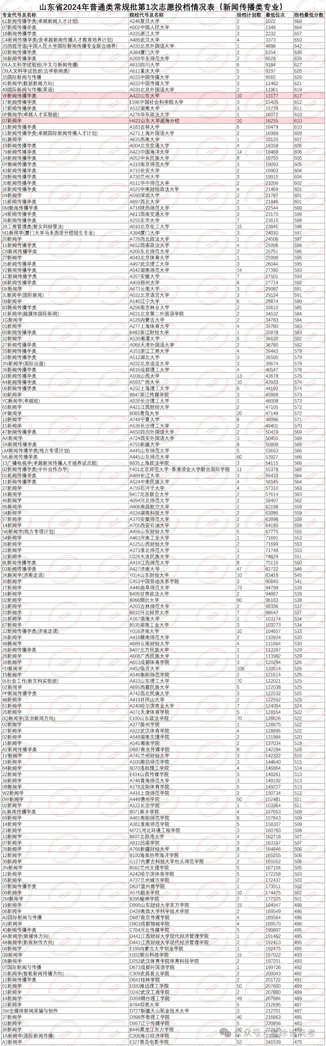 附2024年新闻传播类专业在山东录取数据(哈,我可没说都值得报昂)