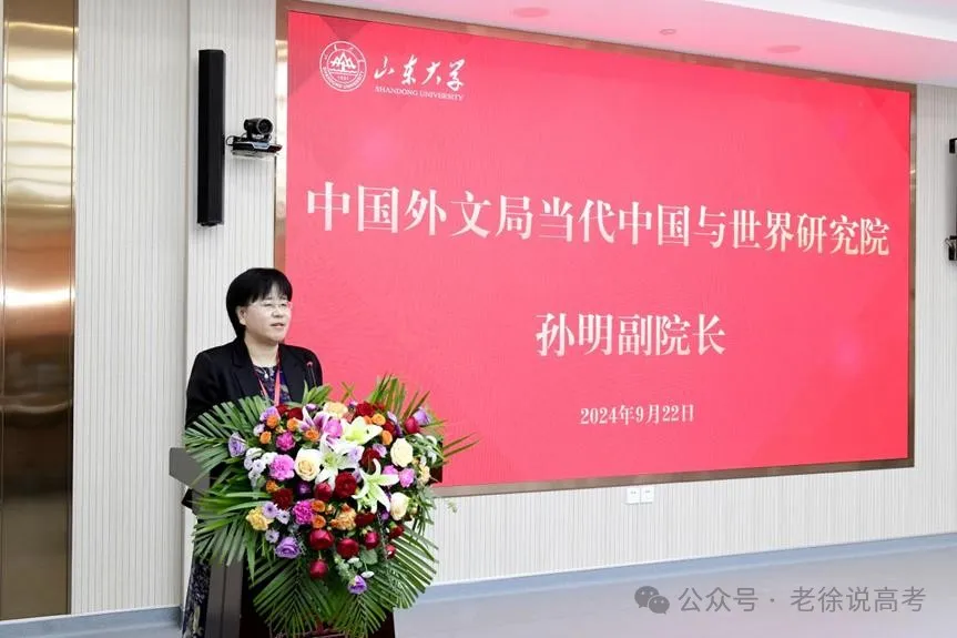 中国外文局当代中国与世界研究院副院长、研究员孙明在致辞中表示,国际传播学科体系的建设任重道远,“大块头更需要一副好嗓子”。山东大学新闻传播学院国际新闻与传播专业的设立,为国际传播学科体系建设注入了新的动力。她期待中国外文局与山东大学在未来持续开展深度合作,培养有情怀、有热情、有目标的国际新闻与传播人才,为国际传播事业贡献力量。