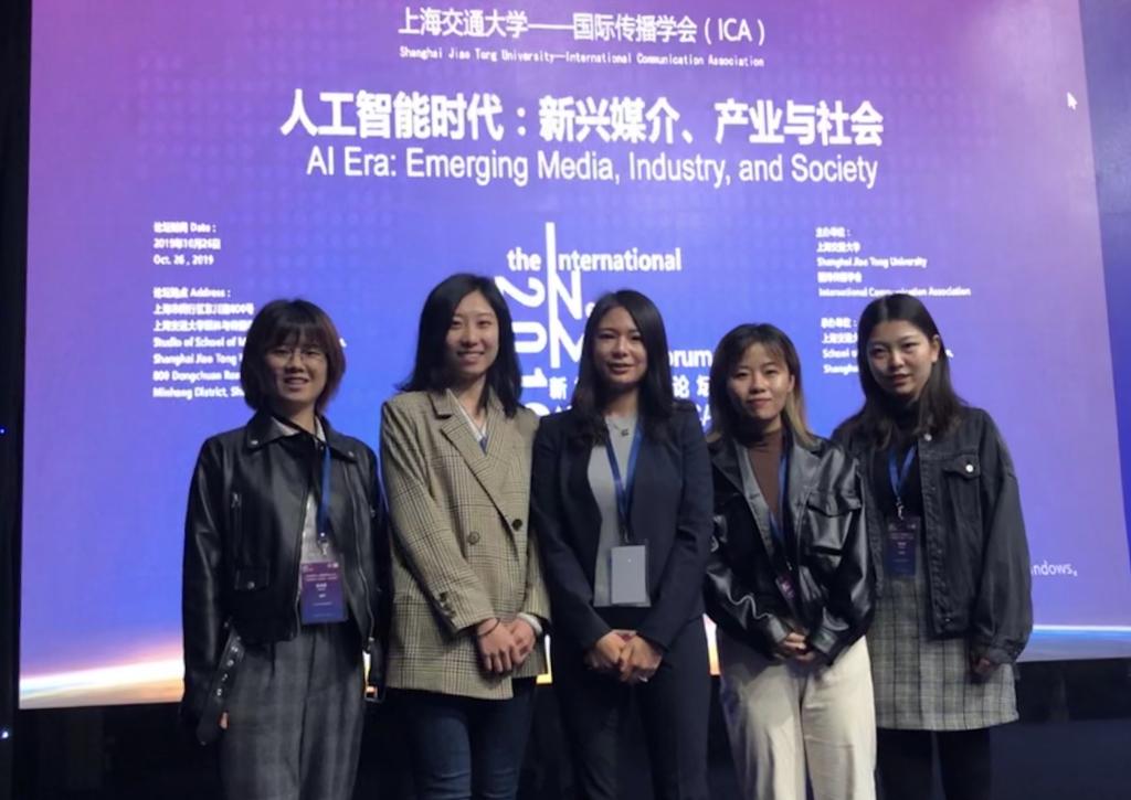 10月26日,新闻传播学院杨晓冬老师带领其硕士研究生苏琪、李卓然、隗来、李怡静赴上海参加了由上海交通大学与国际传播学会(ICA)共同举办的新媒体国际论坛,本届论坛主要围绕“人工智能时代:新兴媒介、产业与社会”展开讨论。