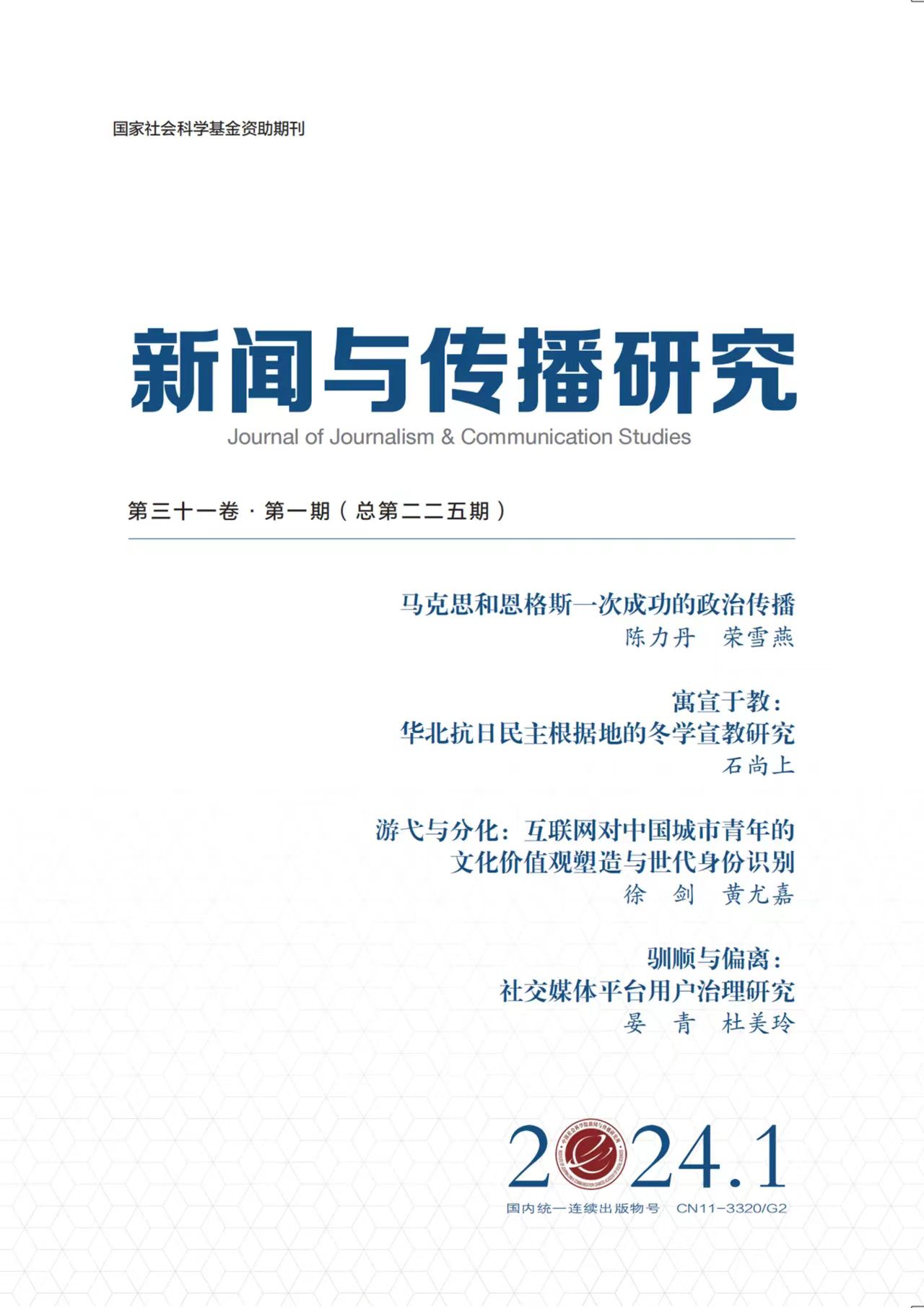 近日,我院俞凡教授指导的2022级博士生石尚上在新闻传播学科权威期刊《新闻与传播研究》2024年第1期发表论文《寓宣于教:华北抗日民主根据地的冬学宣教研究》,该论文是俞凡教授国家社会科学基金重大项目“新民主主义革命时期中国共产党宣传动员工作史研究”的阶段性研究成果。这也是俞凡教授带领的中国共产党新闻宣传动员工作研究团队继202210月在新闻传播学权威期刊《国际新闻界》上由博士生杨帆独立发表论文《以组织之名:1940年代山东根据地“开会”的宣传动员机制》后,团队博士生第二次在国内权威期刊独立发表论文。