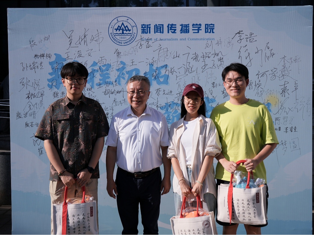新闻|山东大学新闻传播学院2025级新生迎接工作顺利进行 9月1日上午,新闻传播学院2025级本科生与研究生迎新工作正式启动。迎新期间,学校领导高度重视,亲临现场对学院迎新工作进行视察和指导:山东大学党委书记任友群亲切问候了学院三位圆满结束西部计划支教活动、顺利归来的同学,并与他们在签名墙前合影留念。中国工程院院士、山东大学校长李术才,山东大学党委副书记李向阳分别为新生送上满载关怀的祝福与礼品,同时亲切慰问了现场工作人员和志愿者,对大家为迎新工作付出的辛勤...