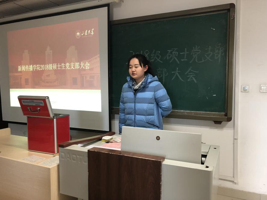 2018级硕士生党支部召开支部大会 12月29日上午,新闻传播学院2018级硕士生党支部于中心校区知新楼A623教室顺利召开支部大会。会议由支部书记孙静茹主持,对王玉珏、张皓妍、吴洁、张嘉蕊四名预备党员发展为中共正式党员进行讨论和表决。新闻传播学院党委副书记王欣出席了本次会议。本次大会共分为四项议程,大会第一项议程是由待转正的预备党员汇报预备期一年中自己在思想、生活、工作等各方面的情况。紧接着大会进行第二项议程,由支委会青年委员万雅钰宣读培...