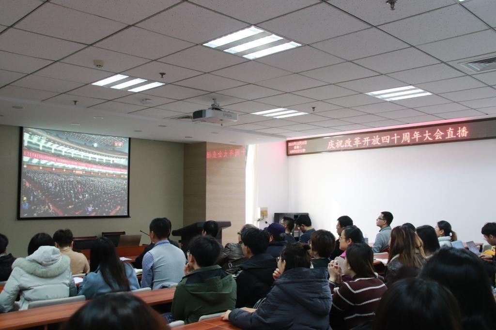 新闻传播学院组织师生观看“庆祝改革开放四十周年大会”直播 12月28日上午10时,“庆祝改革开放四十周年大会”在北京人民大会堂隆重召开,山东大学新闻传播学院部分教职工、学生党员以及入党积极分子在知新楼A座606报告厅,观看大会的现场直播。院党委书记王德胜,党委副书记王欣一同观看。十点整,大会正式开幕,首先是100名改革开放杰出贡献个人介绍和颁奖仪式,望着大屏幕中一个个表彰人物的面孔,在场师生不时鼓掌致敬。在场全体师生认真聆听了习近平总书记的讲话,大家备受鼓舞,引发...
