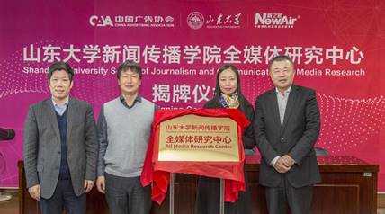 山东大学新闻传播学院全媒体研究中心正式揭牌 12月26日上午,由中国广告协会、山东大学新闻传播学院、新之航传媒集团强强联合成立的大数据研发基地——山东大学新闻传播学院全媒体研究中心揭牌仪式在山东大学举行。中国广告协会副秘书长、《现代广告》杂志社社长赵华,山东大学新闻传播学院党委书记王德胜教授,新之航传媒集团董事长鞠航,山东大学广告研究中心主任、新闻传播学院臧丽娜教授共同为全媒体研究中心揭牌,并分别致辞。山东大学新闻传播学院党委书记王德胜教授...