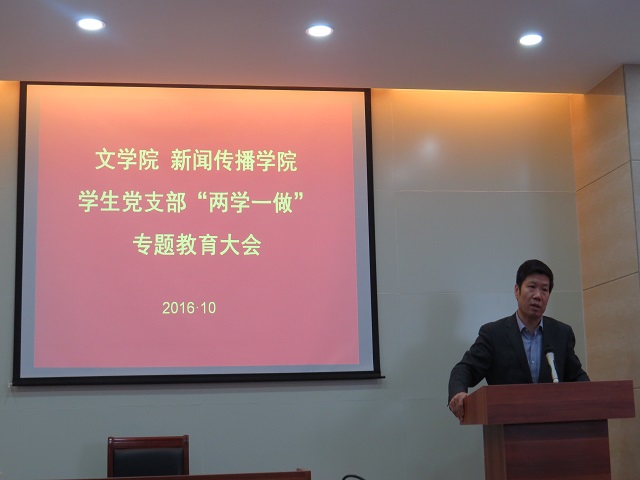 我院与文学院举办“两学一做”学生党员教育大会 10月27日,新闻传播学院、文学院在知新楼A座606召开学生党支部“两学一做”专题教育大会。