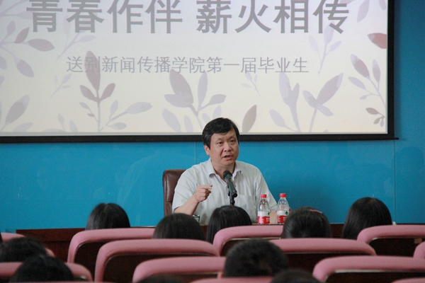新闻传播学院院长吕芃送别首届毕业生 6月24日下午,新闻传播学院吕芃院长送别学院第一届毕业生,为2017届毕业生们带来在母校的“最后一堂课”。