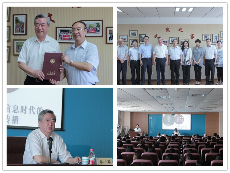 李从军受聘担任新闻传播学院名誉院长并为师生举行专题报告会 6月16日,全国政协教科文卫体委员会副主任、新华社原社长、山东大学校友李从军受聘山东大学新闻传播学院名誉院长,校党委书记李守信会见李从军并向其颁发聘任证书。