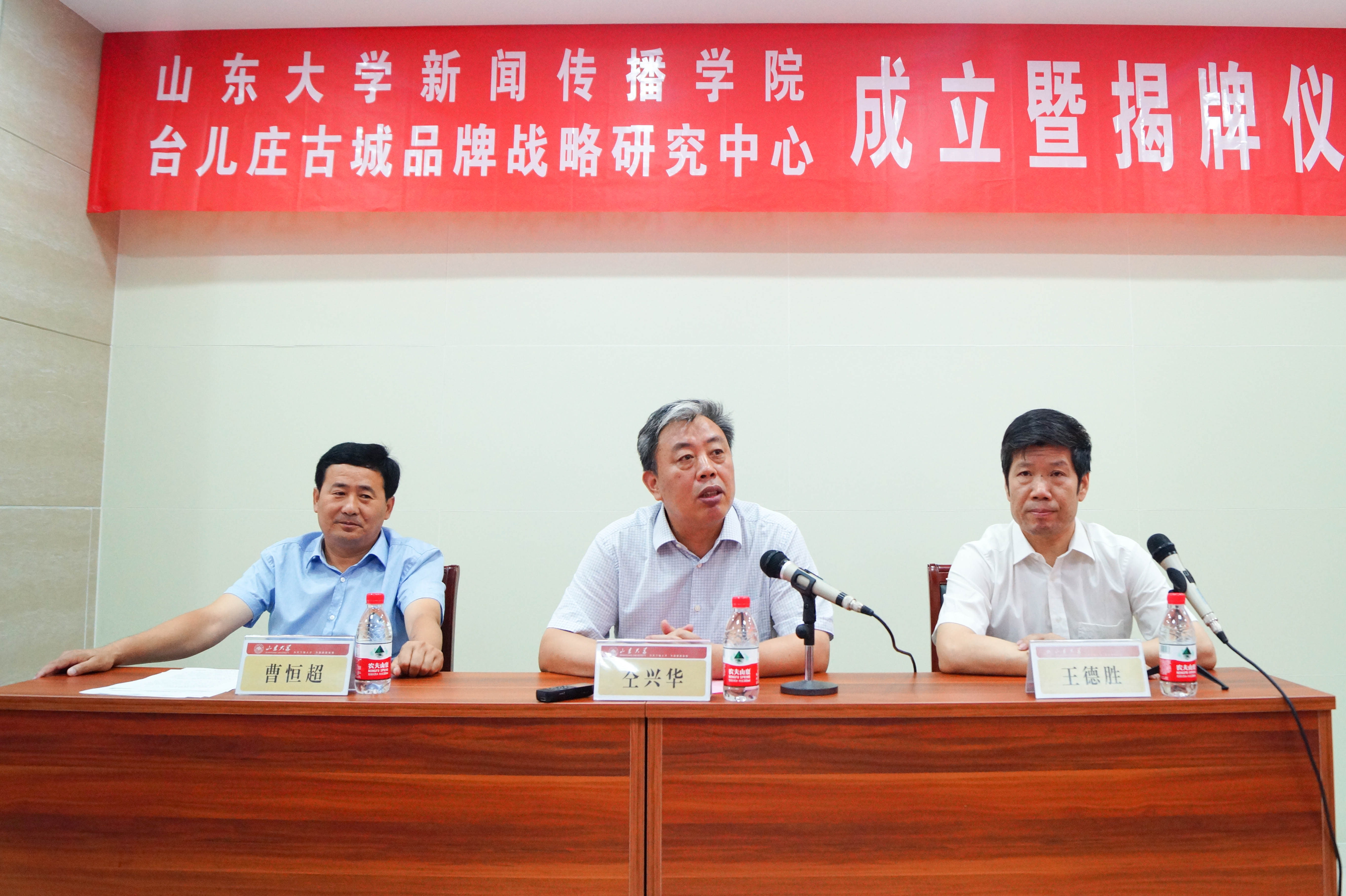 山东大学新闻传播学院成立台儿庄古城品牌战略研究中心 7月5日上午,山东大学新闻传播学院台儿庄古城品牌战略研究中心成立暨揭牌仪式在中心校区举行。